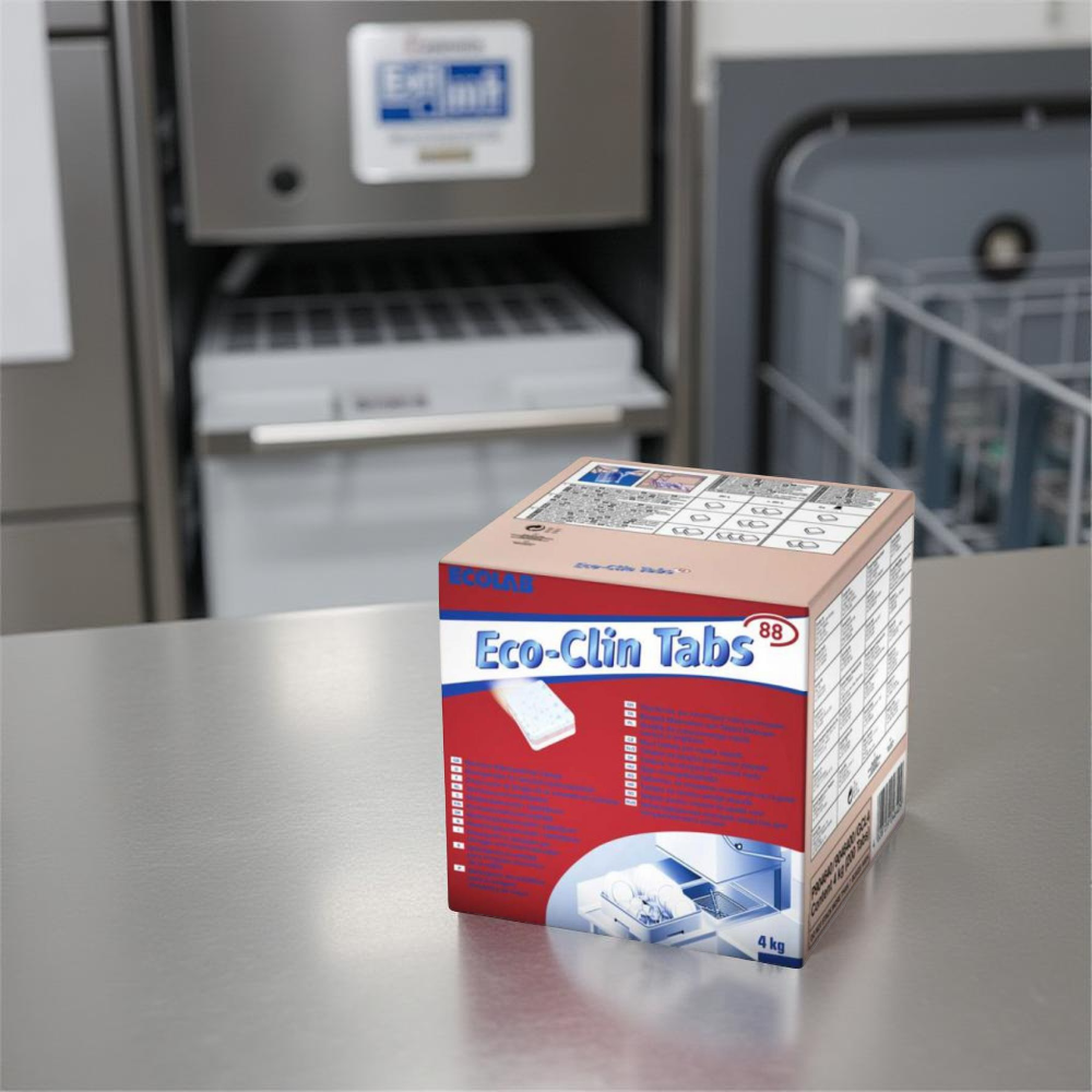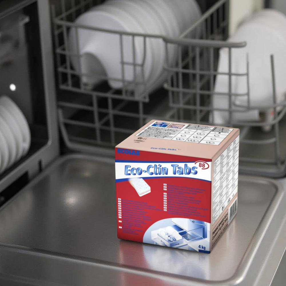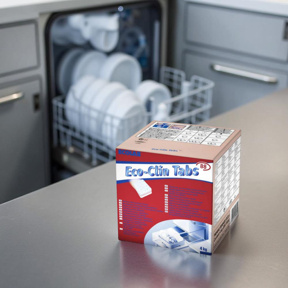 Protein ve nişasta oluşumunun yanı sıra kahve ve çay lekelerine karşı etkilidir. Kullanımı basittir. Bardakları korozyona ve buğulanmaya karşı korur. Tablet formundan dolayı kullanıcı tarafından ürünün her defasında doğru miktarda kullanılması sağlanır. Eco-Clin Tabs 88, bulaşık makinesinde yıkanabilen her tür mutfak eşyası için uygun makine bulaşık yıkama tabletleridir. Eco-Clin Tabs 88 olağanüstü temizlik performansı sağlar. Ürün formülü özellikle camları cam korozyonuna ve buğulanmaya karşı korur. Tabletler ağır birikintileri çözer, örn. protein ve nişasta birikimi ile kahve ve çay lekelerine karşı oldukça etkilidir.