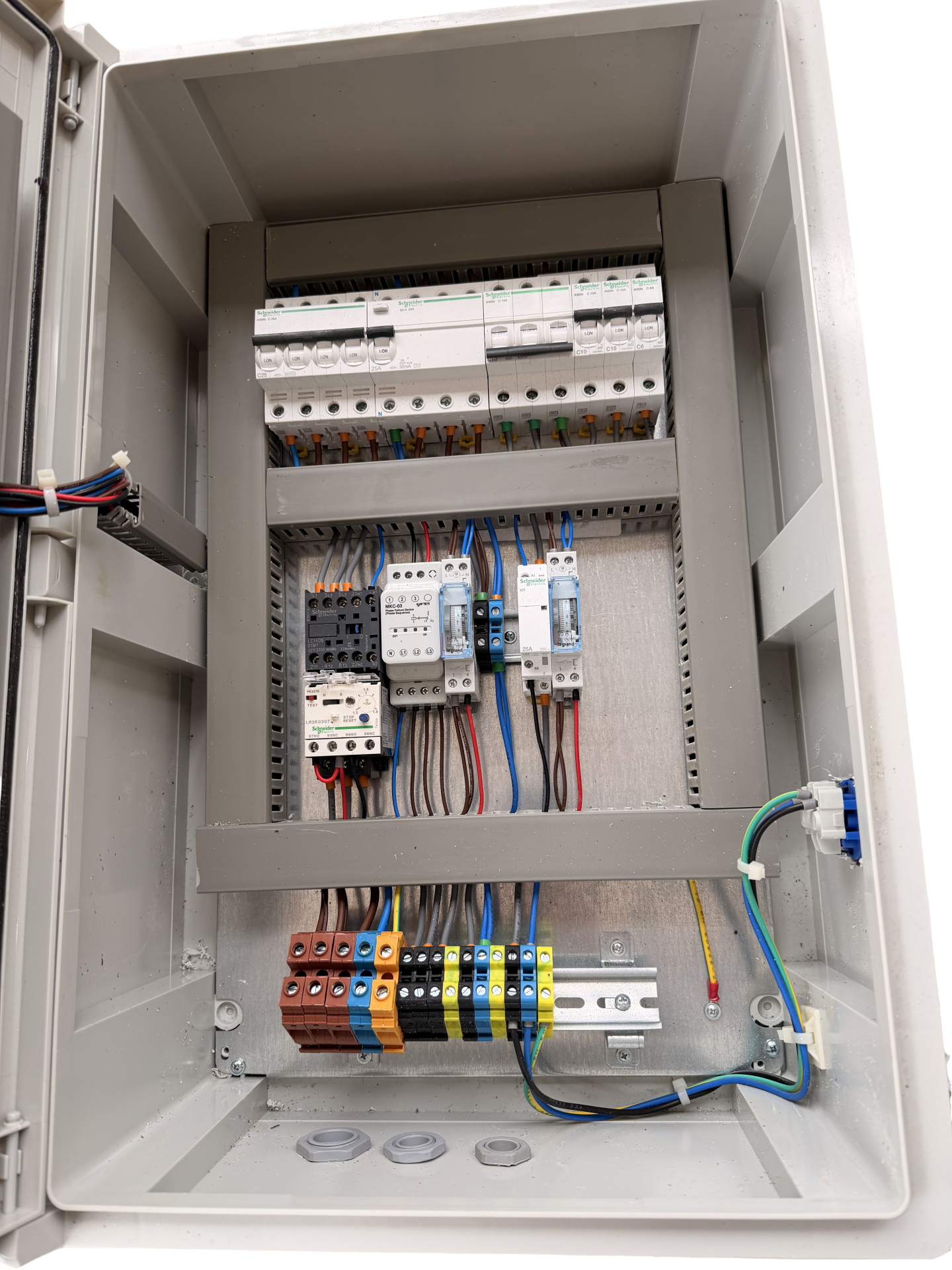 Fazların ters gelmesi, bir fazın gelmemesi, su ile temas, motorun fazla ısınması, yangın gibi tüm korulamaları içermektedir.